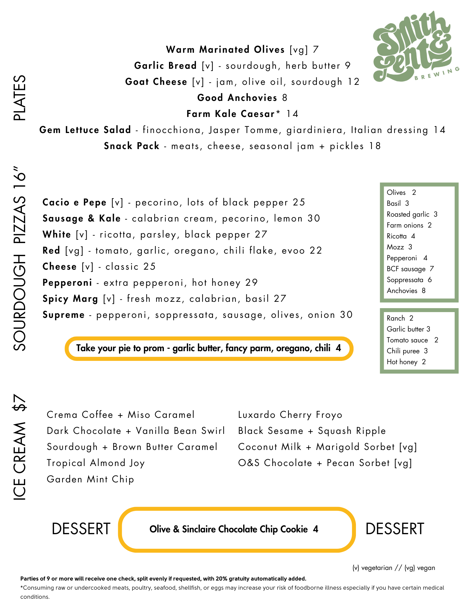 Our online ordering menu is always up to date (though we may have some features not available to go).