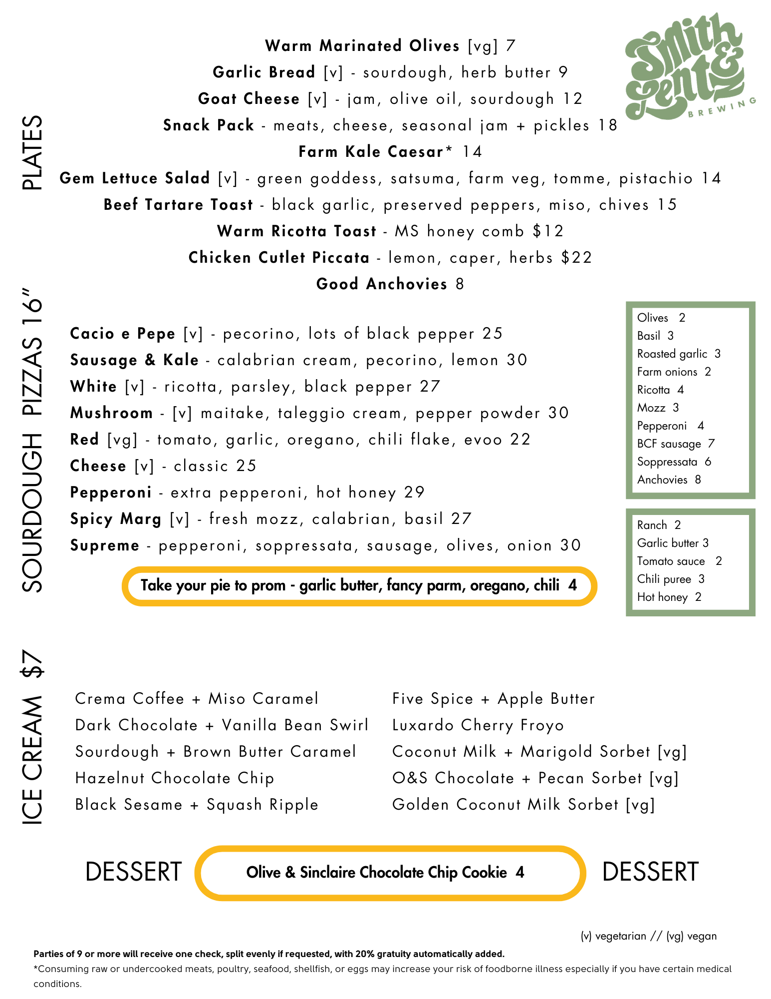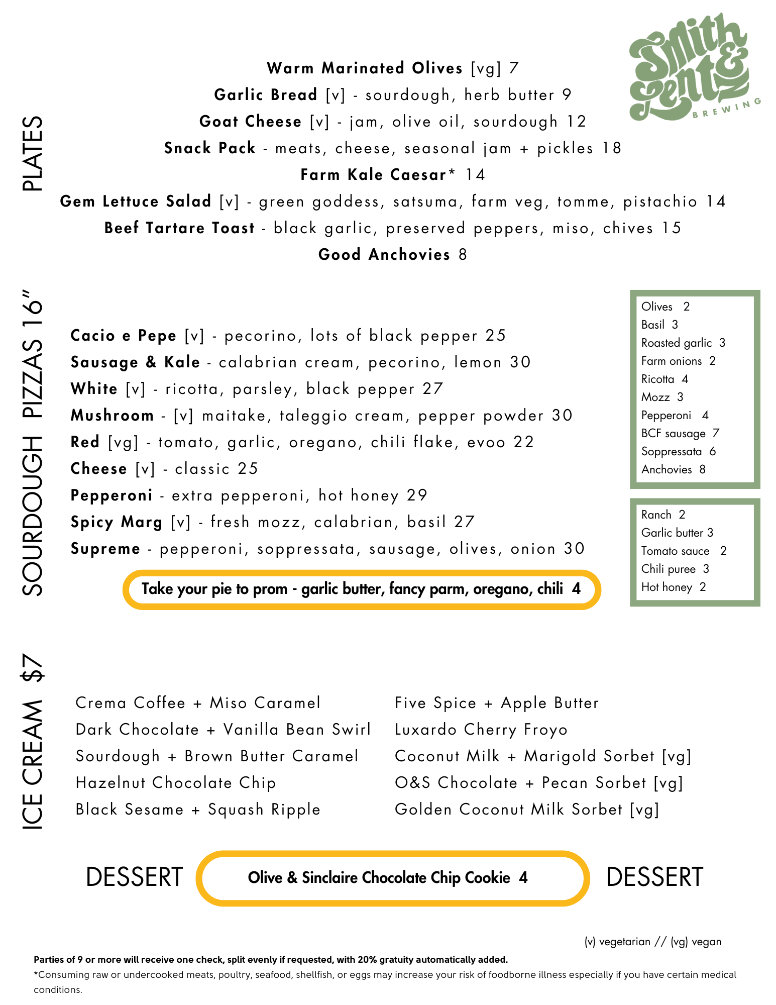 Our online ordering menu is always up to date (though we may have some features not available to go).