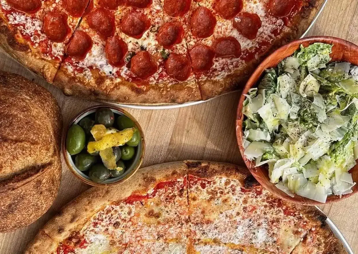 We got the margarita pizza and it was so good. We asked for a side of garlic butter for the crust and that was a solid upgrade! We will definitely be back next time we are in town. The Sourdough and Brown Butter Caramel ice cream was elite. An absolute must order!”